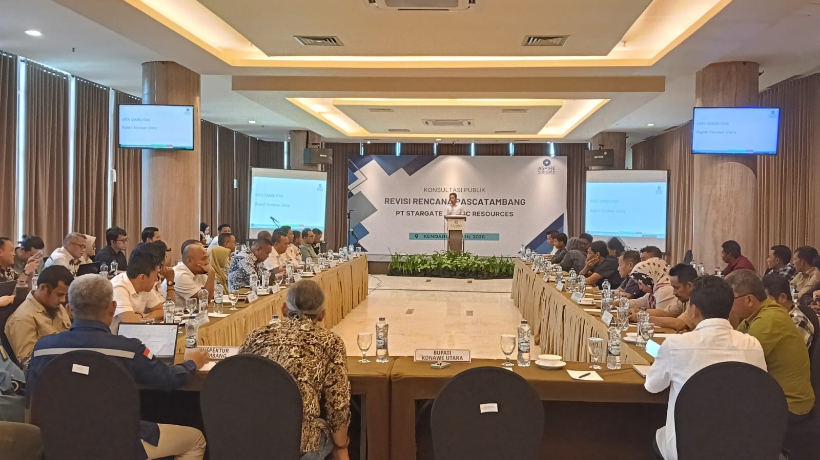 WANGGUDU, SULTRAEKSPRES.COM – Bupati Konawe Utara, H Ikbar, menyambut positif pelaksanaan Konsultasi Publik Revisi Rencana Pascatambang PT Stargate Pasific Resource yang digelar di salah satu hotel di Kota Kendari, Rabu (15/4/2026).