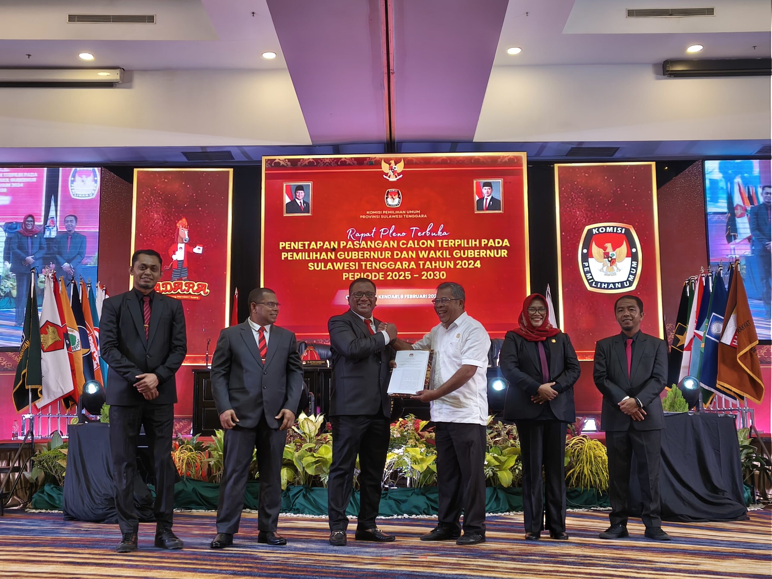 Berdasarkan berita acara tersebut, KPU Sultra menetapkan pasangan Andi Sumangerukka dan Ir Hugua sebagai pasangan pemenang pemilihan Gubernur dan Wakil Gubernur Sulawesi Tengah periode 2025-2030.