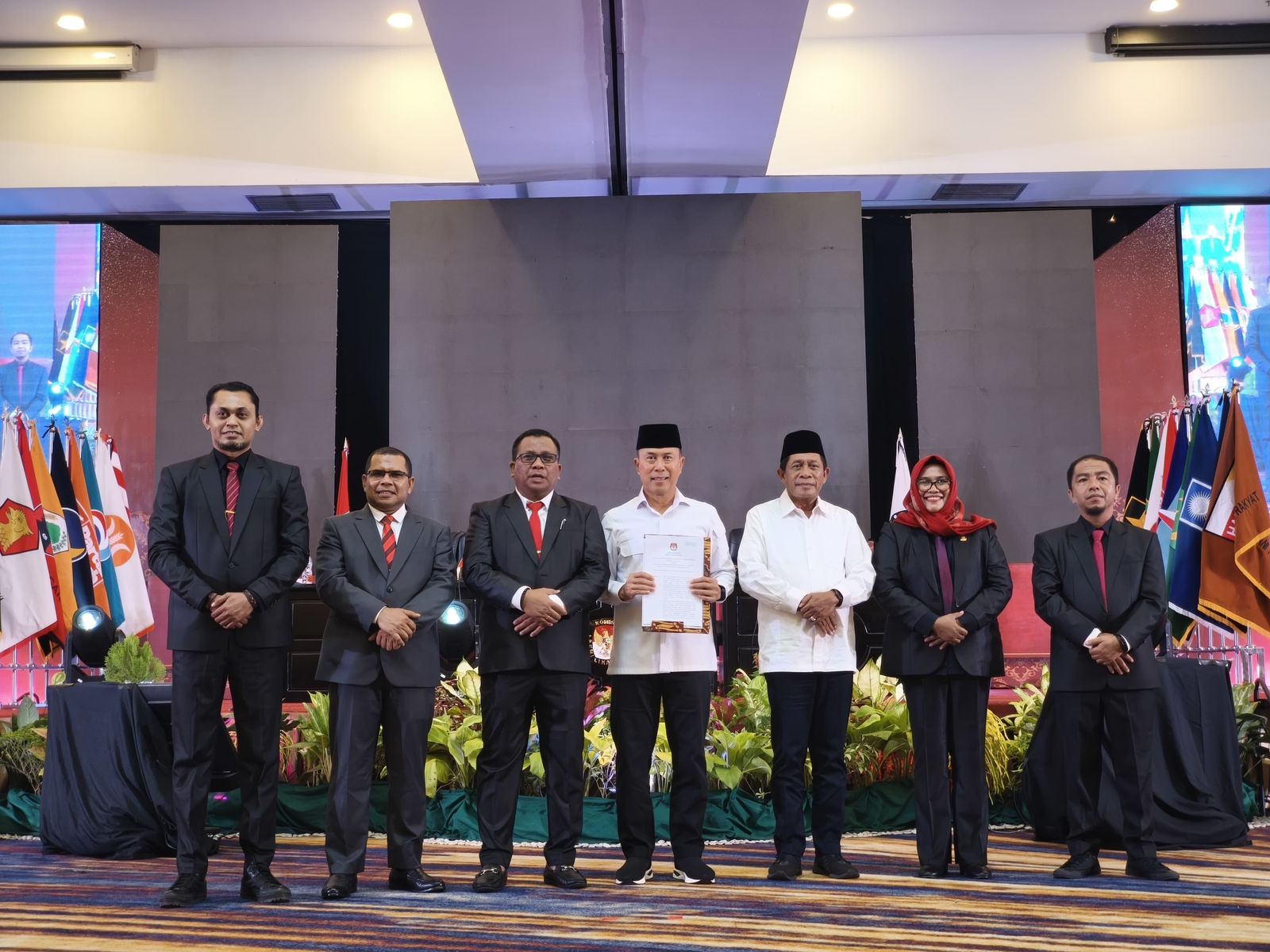 Pleno penetapan pasangan Gubernur dan Wakil Gubernur Sultra terpilih Pilkada 27 November 2024 dipimpin langsung oleh ketua KPU Sultra, Asril, bersama empat anggota komisioner lain.