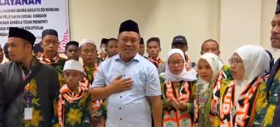 Saat menyambut jamaah umrah, H Ruksamin mengucapkan selamat datang kepada para pemenang lomba MTQ Tingkat Provinsi Sultra yang telah menyelesaikan rangkaian umrah di tanah suci.