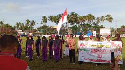 WANGGUDU, SULTRAEKSPRES.COM – Sejumlah Sekolah Dasar Negeri (SD) dan Sekolah Menengah Pertama (SMP) turut memeriahkan pembukaan kegiatan Porseni di Kecamatan Molawe dalam rangka peringatan HUT RI ke-79 bertempat di Lapangan Kecamatan Molawe, Rabu (7/8).