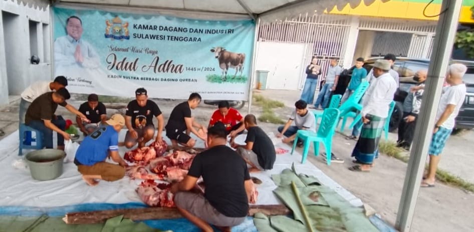 Kadin Sultra Bagikan Ratusan Kilo Daging Kurban untuk Warga Kendari