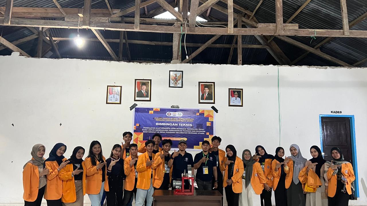 KONSEL, SULTRAEKSPRES.COM — Mahasiswa Kuliah Kerja Nyata (KKN) Tematik Universitas Halu Oleo (UHO) melakukan sosialisasi penerapan Alat Pengiris Umbi Berbasis Teknologi Tepat Guna di Desa Puasana, Kecamatan Moramo Utara, Kabupaten Konawe Selatan (Konsel). Kegiatan ini merupakan bagian dari program pengabdian kepada masyarakat yang bertujuan untuk memperkenalkan serta mengimplementasikan inovasi alat pengiris umbi guna meningkatkan efisiensi produksi pangan lokal dan mendukung kemandirian ekonomi masyarakat desa, belum lama ini.